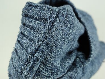Sweter damski, dzianinowy, w kolorze denimowego niebieskiego. - Fason: luźny, oversize z obniżoną linią ramion - Dekolt: okrągły, prążkowany - Rękaw: długi - Dzianina: przewiewny, ażurowy splot o ...