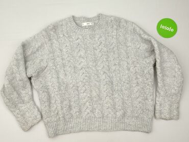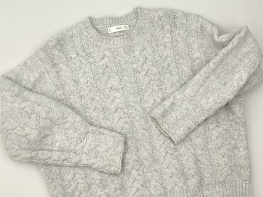 Sweter damski marki Mango w jasnoszarym kolorze. Charakteryzuje się okrągłym dekoltem i długimi rękawami zakończonymi ściągaczami. Sweter ma luźny krój, idealny do noszenia na co dzień. Widoczny sp...Stan: