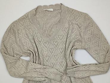 Sweter damski, beżowy, dzianinowy - Fason: sweter/cardigan zapinany z tyłu na 5 guzików (można nosić także z guzikami z przodu) - Kolor: jasny beż - Splot: patchworkowy wzór w kratę z naprzemienny...