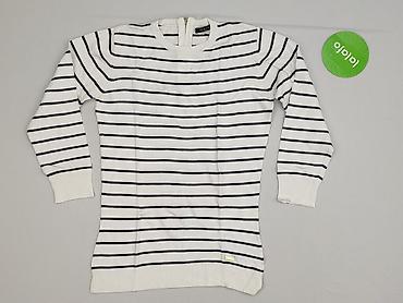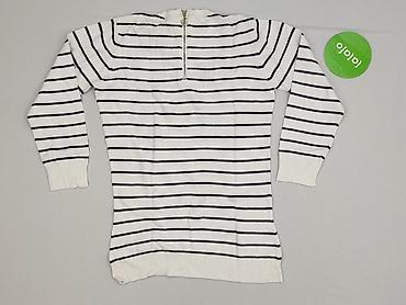 Sweter damski Mohito Basic, rozmiar S. - Krój: klasyczny, z długim rękawem i okrągłym dekoltem - Wzór: poziome pasy w kolorach białym, czarnym i musztardowym - Detale: kontrastowe ściągacze przy d...