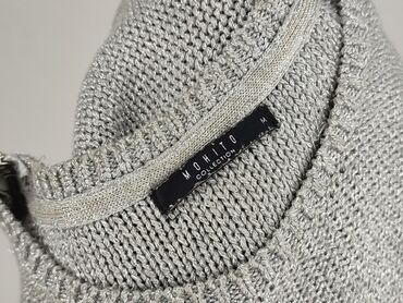 Sweter damski Mohito Collection, rozmiar M. - Kolor: srebrzysty/szary z delikatnym połyskiem - Fason: dłuższy, swobodny, z zaokrąglonym dekoltem - Rękawy: 3/4 zakończone ściągaczami - Dzianina: pl...