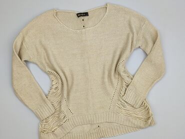 Sweter damski Mohito, rozmiar L - Krój: luźny, nietoperz z krótkimi rękawami, obniżona linia ramion - Dekolt: okrągły - Długość: lekko wydłużony tył - Kolor: kremowy/ecru - Wykończenie: wszyte dro...