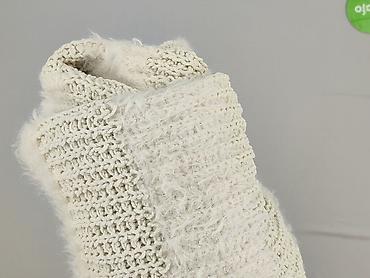 - Splot: naprzemienne pasy – gładki, ażurowy splot przeplatany miękką, „puszystą” włóczką