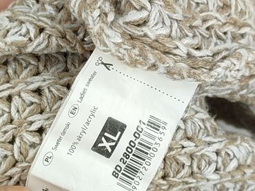 Sweter damski Hluang Hai’o, rozmiar L/XL - Kolor: kremowy/ecru z delikatną, złotawą nitką - Fason: klasyczny, lekko luźny; długi rękaw; okrągły dekolt - Detale: dekoracyjne wstawki o grubszym splo...