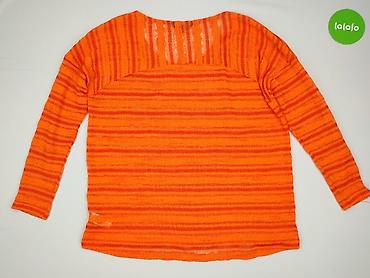 Sweter damski w paski - Krój: klasyczny, z okrągłym dekoltem (crew neck), długie rękawy - Wzór: poziome paski w kolorze pomarańczowym na kremowym tle - Materiał: 50% bawełna, 50% akryl (metka na z...