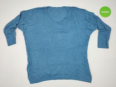 Sweter damski, dzianina ażurowa, niebieski (Made in Italy) - Fason: klasyczny sweter z długim rękawem - Dekolt: okrągły - Splot: wyraźna, ażurowa tekstura; dół i mankiety w prążkowany ściągacz - K...