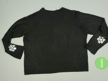 Damski sweter z dzianiny z kwiatowym wzorem - Krój: klasyczny, z okrągłym dekoltem, długie rękawy - Kolor bazowy: czarny - Wzór: duże kwiaty w odcieniach intensywnego różu i kremowej bieli, kontra...