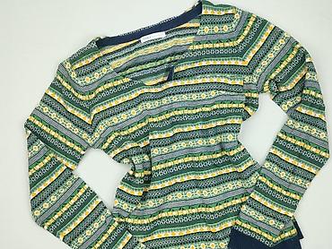 - Wzór: wielokolorowy żakard w pasy (zieleń, granat, żółty, biel) na całej powierzchni