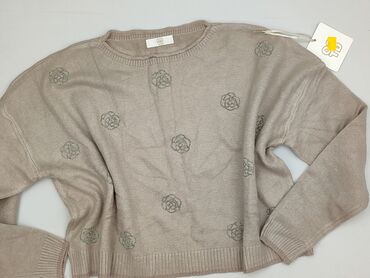 Beżowy sweter damski z ażurową koronką - Model: dzianinowy pulower z długim rękawem - Kolor: ciepły beż - Fason: prosta talia, okrągły dekolt - Detale: efektowne wstawki i naszycia z koronki o kwi...Sweter damski OOTD, kolor tortora (beżowo‑taupe), rozmiar TU (one size).