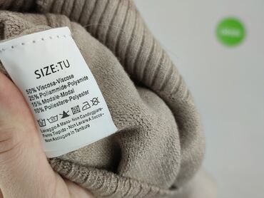 Sweter damski w kolorze beżowym, z dekoltem w kształcie litery V, wykonany z dzianiny. Idealny do noszenia na co dzień, zapewnia komfort i uniwersalny styl. Może być bazą dla wielu stylizacji, zaró...