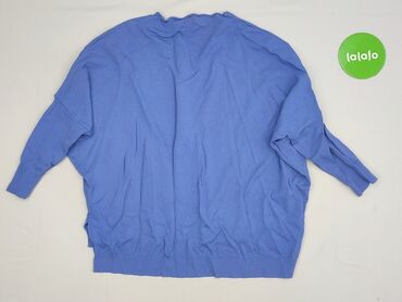 Sweter damski – niebieski, dzianina - Klasyczny sweter z dekoltem w serek (V-neck) - Kolor: jasny/niebieski - Krój prosty, lekko luźniejszy - Rękawy 3/4 zakończone szerokim ściągaczem - Ściągacze ...