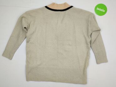 Beżowy sweter damski z dekoltem V - Rozmiar z metki: XS (EUR/US/UK XS, CN 160/80A) - Krój: krótki, dopasowany, z szerokim ściągaczem w pasie - Rękawy: długie, zakończone ściągaczami - Dekolt: głęb...