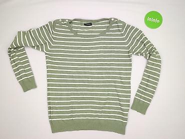 Sweter damski Esmara, rozmiar XL (46/48). - Fason: dłuższy, z zaokrąglonym dołem; rękawy długie z ściągaczami. - Kolorystyka: szerokie poziome pasy – biel u góry, granat, musztardowy i bordo; na ...