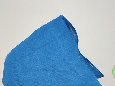 Sweter damski w kolorze niebieskim z dekoltem w kształcie litery V. Długie rękawy i dół swetra zakończone są ściągaczem. Materiał ma błyszczące, brokatowe wykończenie, dodające mu oryginalnego char...