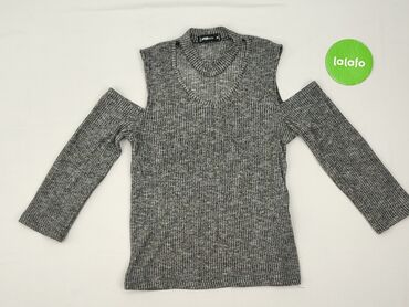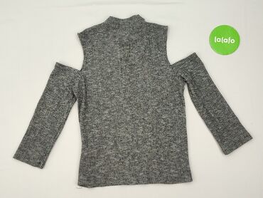 Szary sweter/bluzka damska z długim rękawem i odkrytymi ramionami (cut-out shoulders). - Rozmiar: L (na metce). - Kolor: melanż szarości. - Dekolt w kształcie litery V z cienkimi ramiączkami prz...