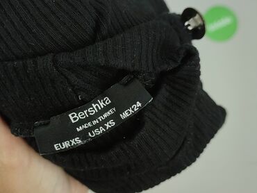 Czarny krótki sweter/bluzka Bershka dla kobiet - Model: krótki top z długim rękawem - Dekolt: głęboki V z przodu i z tyłu - Pasek/taśma łącząca ramiona z tyłu (stabilizuje dekolt) - Rękawy lekko b...