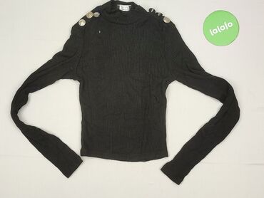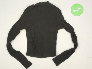Czarny sweter/longsleeve Bershka - Marka: Bershka (Made in Turkey) - Rozmiar z metki: S (EUR S / USA S / MEX 26) - Fason: dopasowany, prążkowany - Dekolt: w kształcie litery V z ozdobną listwą - R...
