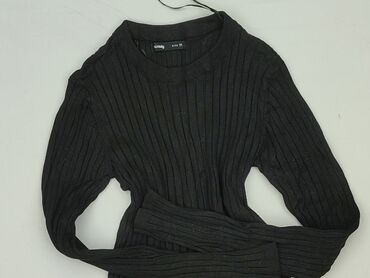 Czarny prążkowany sweter damski Sinsay - Marka: Sinsay - Rozmiar z metki: M - Fason: dopasowany, długi rękaw - Dekolt: okrągły - Dzianina prążkowana na całej powierzchni - Skład materiału (z metki...