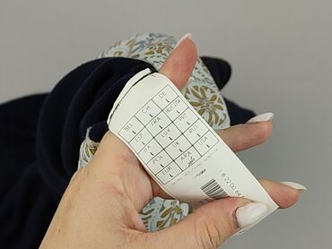 Damski sweter z długim rękawem w kwiaty - Kolor: granatowy z białym, duży kwiatowy wzór na całej powierzchni - Krój: klasyczny, okrągły dekolt, rękawy i dół zakończone ściągaczami w kontrastowej b...