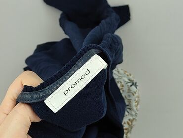 Niebieski sweter damski marki Promod z długim rękawem. Wykonany z dzianiny, posiada okrągły dekolt i delikatny wzór w romby. Idealny do codziennych stylizacji, zapewniający wygodę i swobodę ruchów....