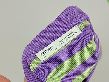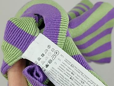 - Wzór i kolor: poziome paski w odcieniach jasnej zieleni i fioletu