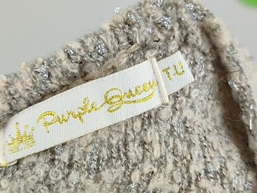Fioletowy sweter damski z połyskującą nitką - Krój: luźny, nietoperzowe rękawy 3/4 z szerokimi, prążkowanymi mankietami; dół również delikatnie ściągany - Dzianina: ażurowa, miękka przędza z metal...