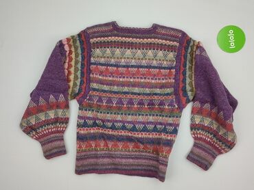 Sweter damski, rozmiar L - Kolor: pudrowy róż - Fason: klasyczny, z okrągłym dekoltem - Długość rękawa: długi - Dzianina o wyraźnym splocie z dekoracyjnymi, puszystymi pasami biegnącymi poziomo na...