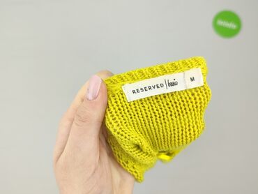 Sweter damski Reserved, rozmiar S - Kolor: jasny, neonowy żółty - Fason: ażurowy, lekko transparentny; rękawy 3/4; dół i mankiety wykończone ściągaczami - Dekolt: łódkowy z przodu; z tyłu efektown...