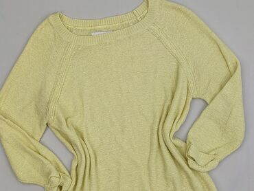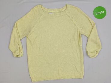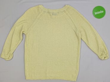 Sweter damski, żółty, ażurowy - Rozmiar: L (z metki) - Fason: klasyczny sweter z okrągłym dekoltem - Rękawy: długie - Dzianina: ażurowy splot z dekoracyjnym, geometrycznym wzorem - Wykończenia: śc...