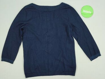 Sweter damski Reserved - Kolor: granatowy z delikatnym, metalicznym połyskiem - Rozmiar z metki: M - Fason: luźny, z obniżoną linią ramion; rękawy 3/4–długie, zwężane przy mankiecie - Dekolt: łago...