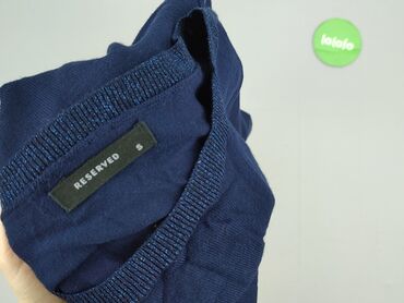 Sweter damski RESERVED - Rozmiar: S (z metki) - Kolor: granatowy z delikatnym, połyskującym efektem (metaliczna nitka) - Fason: klasyczny, lekko luźny, długi rękaw - Dekolt: w kształcie litery V -...