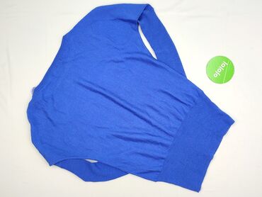 Niebieski sweter damski marki Reserved w rozmiarze S. Sweter charakteryzuje się okrągłym dekoltem i długimi rękawami, co czyni go uniwersalnym elementem garderoby. Jest to klasyczny model, który sp...