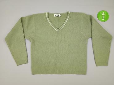 Sweter damski T&L, rozmiar L/XL - Kolor: oliwkowa zieleń - Fason: klasyczny, z dekoltem w serek (V-neck) - Długi rękaw, ściągacze przy mankietach i u dołu - Przód z ozdobnym, wypukłym splotem typu ...