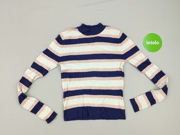 Sweter damski Sinsay, rozmiar M - Fason: dopasowany, prążkowany, z okrągłym dekoltem - Rękaw: długi - Wzór: poziome pasy - Kolory: oliwkowa zieleń, pudrowy róż, biel, jasna szarość (naprzemienne s...Stan: