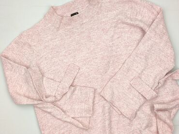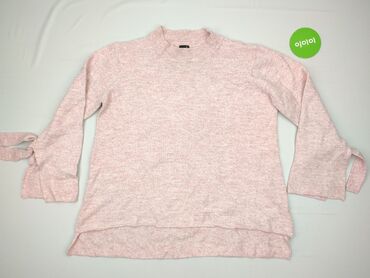 Sweter damski, różowy - Krój: luźny, z obniżoną linią ramion i dekoltem w serek - Długość: do bioder - Rękawy: długie, zakończone szerokim ściągaczem - Splot: ażurowo-teksturalny, miękki i sprężys...