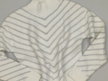 Sweter damski Sinsay, rozmiar XS - Kolor: kremowy/ecru - Fason: prosty, lekko dłuższy (tunika), rozcięcia po bokach u dołu - Dekolt: półgolf (ściagacz przy szyi) - Rękawy: długie - Wykończenie: śc...