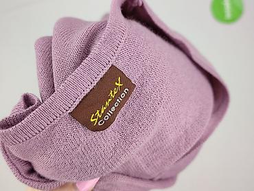 Damski sweter z długim rękawem, kolor liliowy/jasny fiolet. Dekolt okrągły z szerokim ściągaczem. Góra przodu zdobiona ażurowym wzorem „łusek” z małymi perełkami/dżetami w tonacji różowej. Dół i ma...Rozmiar: