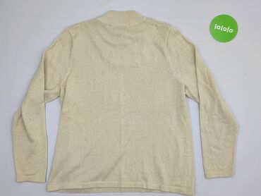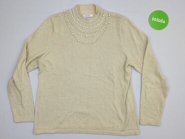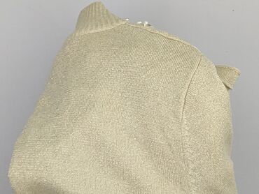 Sweter damski z długim rękawem - Kolor: beżowo‑złoty, z delikatnym metalicznym połyskiem - Krój: prosty, lekko luźny - Dekolt: okrągły - Dół i mankiety: prążkowane ściągacze - Boki: krótkie rozcię...