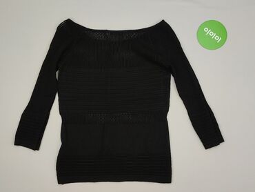 Czarny sweter damski Yessica (C&A), rozmiar S. - Krój: klasyczny, z okrągłym dekoltem i długim rękawem - Ozdoby: pasy z koronki wzdłuż ramion i rękawów, delikatnie postrzępione wykończenie koronki...