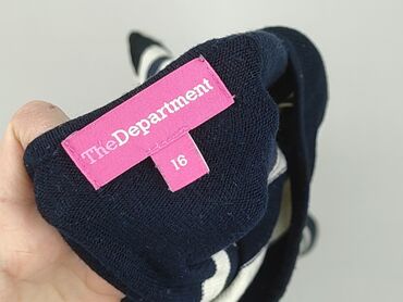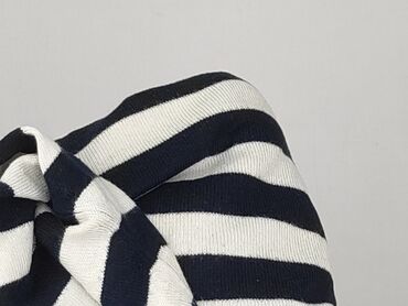Damski sweter/bluzka z dekoltem w serek, granatowy z wstawką w biało‑granatowe pasy. - Krój: lekko dopasowany, z dekoltem V i krótką plisą z 4 guzikami z przodu - Rękawy: 3/4, wykończone białą lam...Stan: