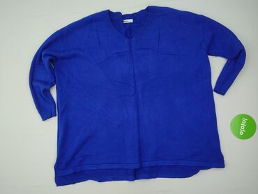 Sweter damski w kolorze kobaltowym. - Fason: oversize z obniżoną linią ramion, klasyczny okrągły dekolt - Rękawy: długie - Wykończenie: elastyczne ściągacze przy mankietach i u dołu - Materiał (z ...