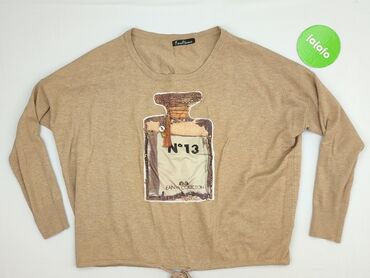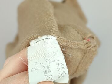 Sweter damski, dzianina Made in Italy - Krój: luźny, lekko oversize z obniżoną linią ramion, rękawy 3/4, dekolt łódkowy - Kolor: beż/piaskowy z delikatną, subtelną nitką z połyskiem - Materiał: 10...Stan: