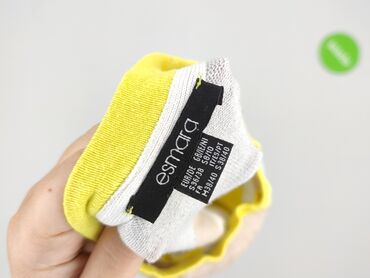 Żółty sweter damski marki Esmara, wykonany z ażurowego materiału. Sweter ma długie rękawy i okrągły dekolt, co sprawia, że jest komfortowy w noszeniu. Fason z ażurowymi wstawkami nadaje mu lekkości...