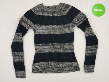 Sweter damski w prążki, rozmiar L - Krój: prosty, lekko wydłużony, z rozcięciami po bokach u dołu - Dekolt: okrągły - Rękaw: długi - Wzór: pionowe prążki z delikatną, lekko połyskującą nitką - Kol...