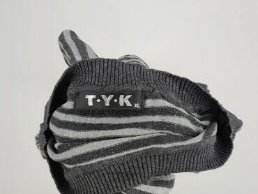 Damski sweter T.Y.K, rozmiar M - Fason: dłuższy sweter/tunika z dekoltem w serek - Wzór: szerokie poziome pasy w kolorze czerwonym i beżowym - Detale: prążkowane ściągacze przy mankietach i u dołu...