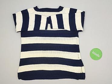 Damska kamizelka/sweterek bez rękawów w paski - Fason: bez rękawów, lekko dopasowany, z elastycznym ściągaczem przy dekolcie i u dołu - Wzór: poziome paski biało‑niebieskie (morski styl) - Materia...