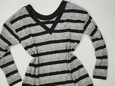 Sweter damski, szary, dzianinowy - Fason: klasyczny sweter z długim rękawem - Dekolt: regulowany sznurowaniem z przodu (wiązanie krzyżowe), z tyłu okrągły - Splot: gruby, fakturowany ściągaczowy; ...Stan: