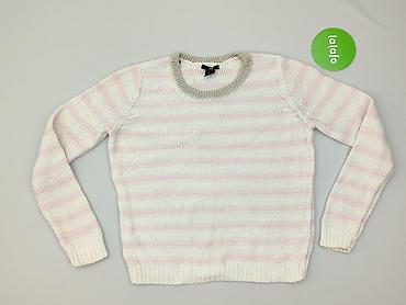 Sweter damski H&M, rozmiar S (165/88A). - Kolor: pudrowy róż z poziomymi, jasnymi paskami. - Fason: klasyczny, z okrągłym dekoltem, długie rękawy, ściągacze przy mankietach i u dołu. - Materiał:...