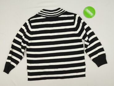 Sweter w paski – dzianina prążkowana - Fason: klasyczny, z długim rękawem - Dekolt: półgolf/ściślejszy ściągacz przy szyi - Wzór: poziome paski w kolorach przygaszonego granatu i ceglanej czerwien...