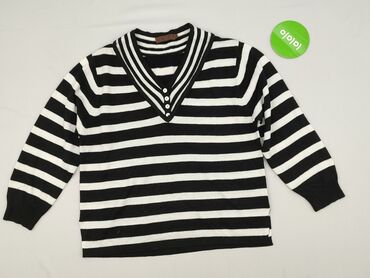 Sweter damski w paski - Fason: dopasowany, dłuższy - Dekolt: głęboki w serek (V-neck) - Rękaw: długi - Wzór: szerokie poziome pasy w kolorach czarnym i grafitowym - Dół i mankiety: szerokie, elast...